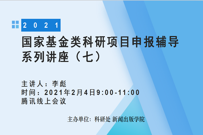 2021年度国家基金类科研项目申报辅导系列讲座(七)